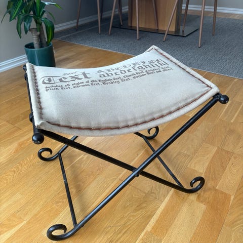 Legg til et snev av vintage sjarm i hjemmets samling med denne vakre stolen i smijern. Stolen er laget av slitesterkt smijern og metallmaterialer, noe som gjør at den vil vare i mange år. Den har et unikt design. Dette originale stykket er et must for enhver samler og vil definitivt tilføre samlingen din eleganse.