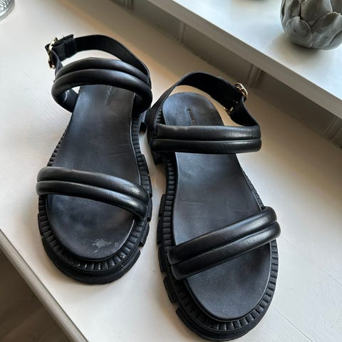 Pent brukte sandaler fra Copenhagen Shoes. Selges da de brukes for lite.