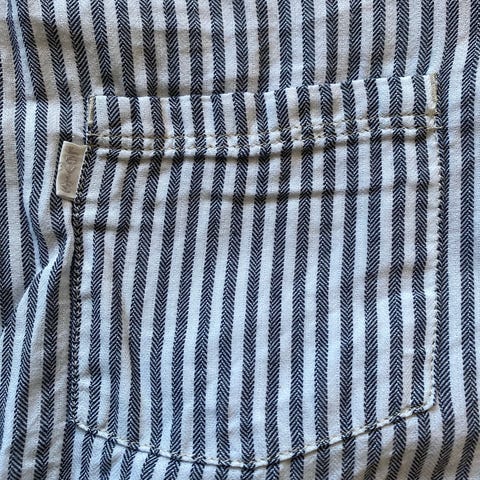 Pene og lette bukser fra Gustav. Lyseblå med hvite striper. To lommer foran og to lommer bak. Størrelsemerket mangler, men er M.