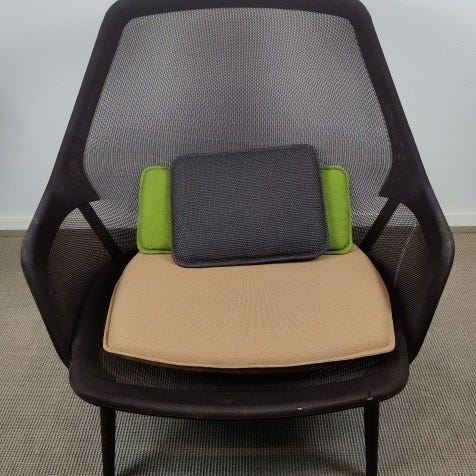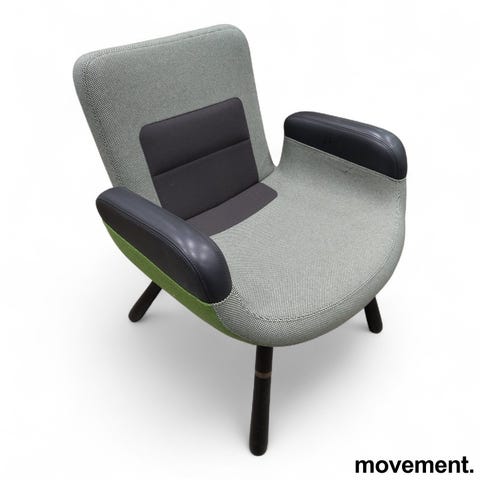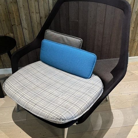 East River Chair fra Vitra er en karaktersterk loungestol med kompakte dimensjoner og tydelige fargeblokker, utviklet for både komfort og visuell identitet i sosiale soner, resepsjoner og stilleområder. Stolen kombinerer ulike materialer og teksturer i en bevisst komposisjon som gir både funksjon og form.