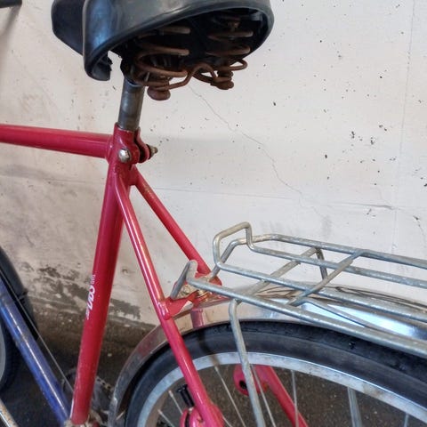Den har ca 2 år gamle dekk, slanger og bremsevaier, men sjekk siste. Har noe rust som trenger behandling. Hadde satt på nytt sete som har rustet på to år i carporten. Trenger nytt sete. Mulig uoriginalt styre. Må hentes. Vipps/kontant.