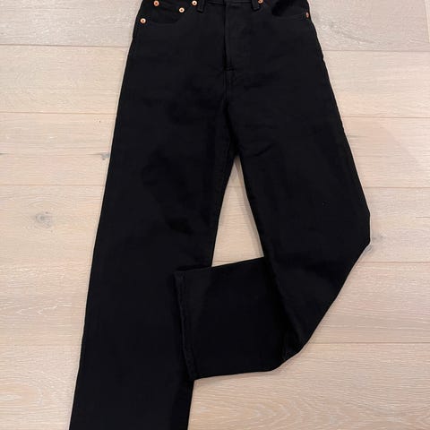 Selger denne buksen fra Levi’s i størrelse 24. buksen er i modellen wide straight og er high waisted.
