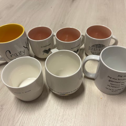 4 rosa strikkemønster kopper selges billig! Må hentes