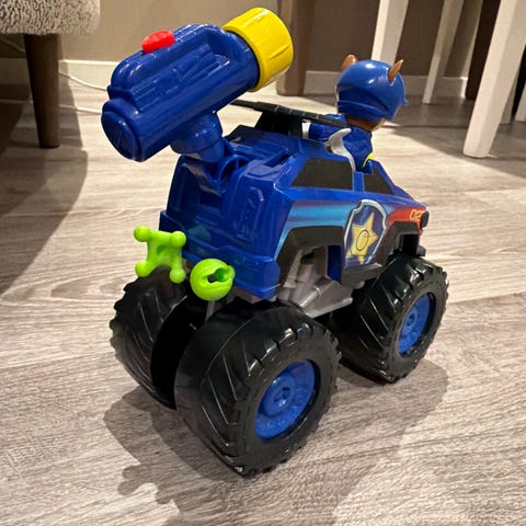 Det enorme Hot Wheels Monster Trucks Car Chompin' Mega Wrex-kjøretøyet blir levende med lys og lyder. Trykk på halen, og Mega Wrex vil sluke formstøpte biler og Hot Wheels-monstertrucker i målestokk 1:64.
