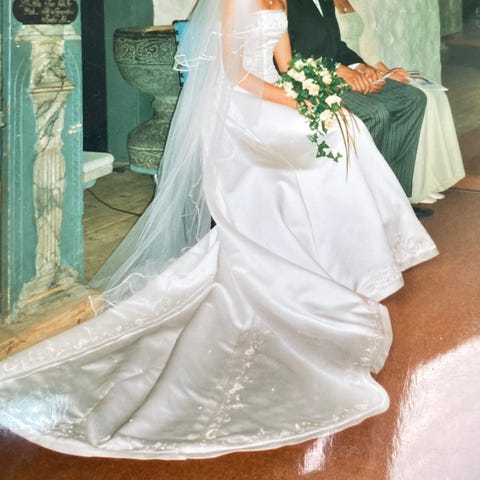 Pent brukt brudekjole kjøpt vinter 2023. Brukt en gang i bryllup august 2024. Ingen synlige skader, pent renset. Ny pris 21000kr.