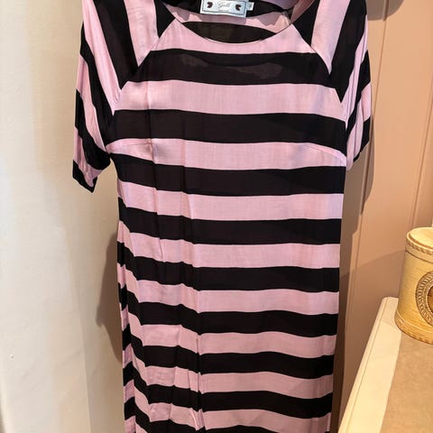 Kjole i fin fasong( foret) i 50% bomull. Str. 12( M/L)Brukt én gang.Lengde 94 cm/ mål rundt v/ armhulene ca 96 cm