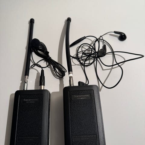 Selger et komplett Saramonic Blink500 Pro B1-sett (1 sender + 1 mottaker) med ladeetui og alt originalt tilbehør.