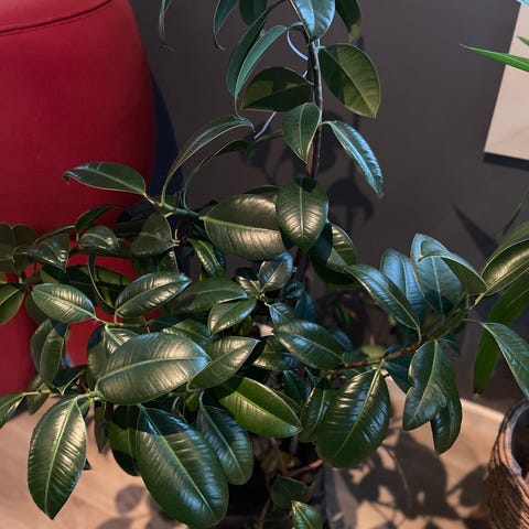 Ficus med fargespill - planten kr. 100 - ny strikket potteskjuler kr. 75