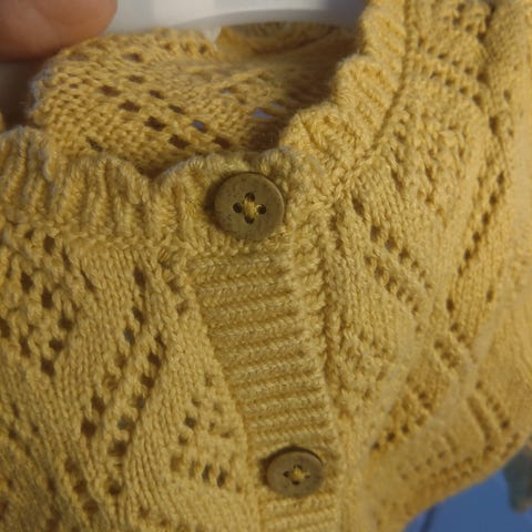 Memini sennepsgul cardigan og romper i ull str 62 (68)