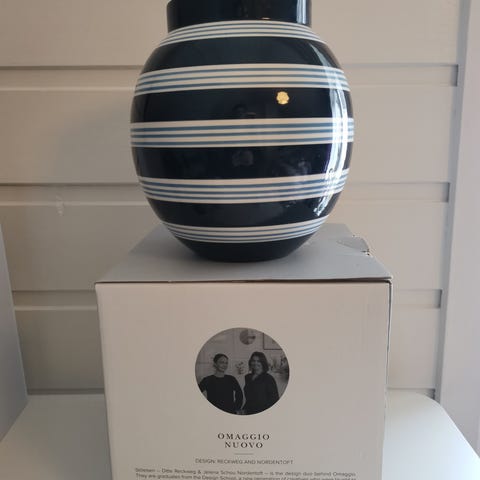 Stor vase / lykt fra Magnor i blå/turkis farget glass. Med trelokk.