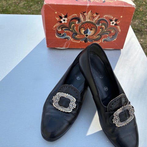 Klaveness Bunadsko str 36 selges kr. 400,-. Ny pris er ca kr. 1800,-. Skoene er pent brukt og uten skader. Litt hæl.