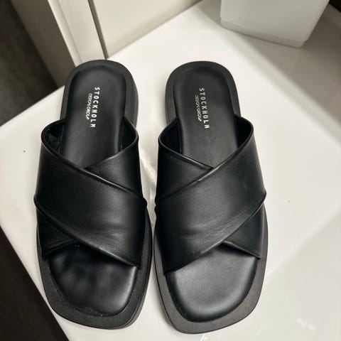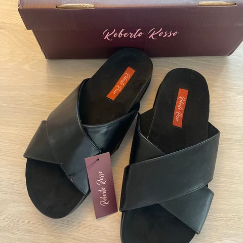 Sandalene er kun prøvd på og selges som nye i eske. Kan sendes pr post for kr 50 mot forhåndsbetaling på Vipps.