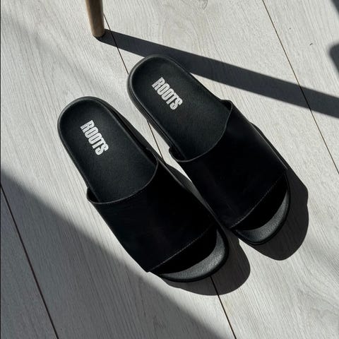 Roberto Rosso Carmille sandal i sort skinnimitasjon. Beskrivelse fra nettside: Komfortabel og trendy sandal med dempet ton-i-ton såle, brede kryssremmer, åpen tå og skinnimitasjon. Carmille er et must have til garderoben, perfekt til både shorts og kjole. Veil. pris 699 kr.