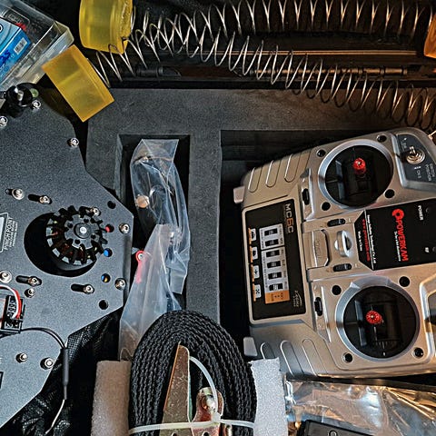 - Sled "slede" / gimbal (med kabler (HDMI, strøm) og monitor-arm)