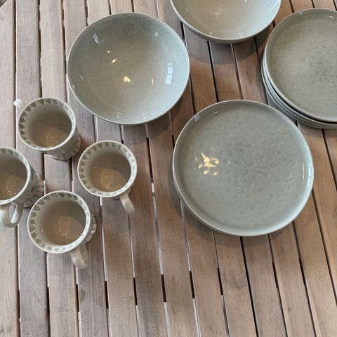 Middagstallerkener + små skåler er solgt