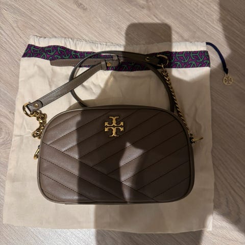 Veldig lite brukt Tory Burch veske i beige til salgs.