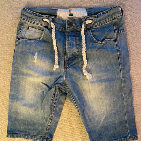 Søkeord: sommerbukse, bermudashorts, lang denimshorts, kort olabukse