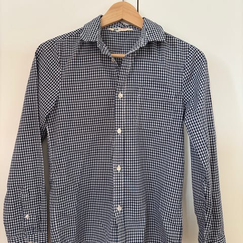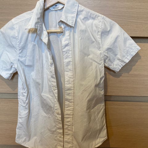 Selger en pent brukt lyseblå skjorte med korte ermer fra H&M i størrelse 152.