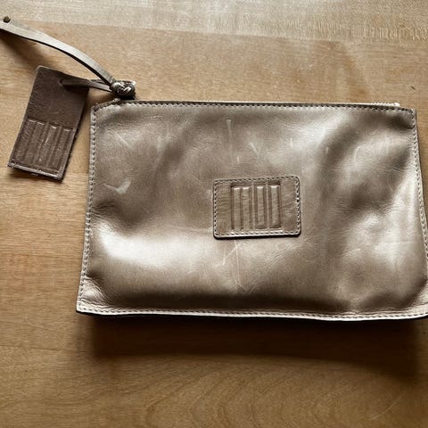 Pent brukt liten håndveske. Følger med håndreim og skulderrem, eller man kan bruke den som clutch. Mange lommer inni.