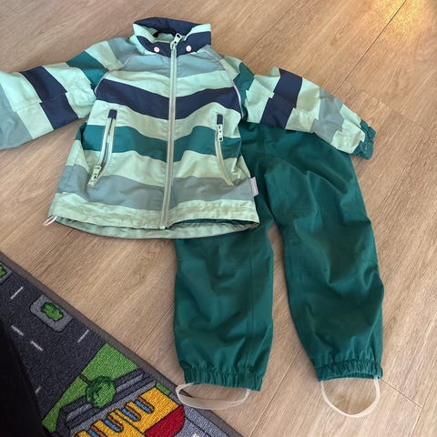 Todelt Reima vintersett. Jakke: Det er en del slitasje på denne. Bukse: Litt slitasje på kne, men ellers hel og fin.