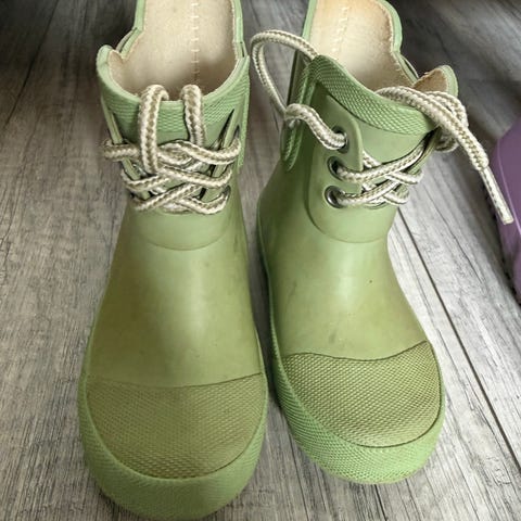 Brukt av 1 barn, det vises gjerne under støvlene og i sålene. Støvlene er hele og har fortsatt mye bruk igjen. 🙂