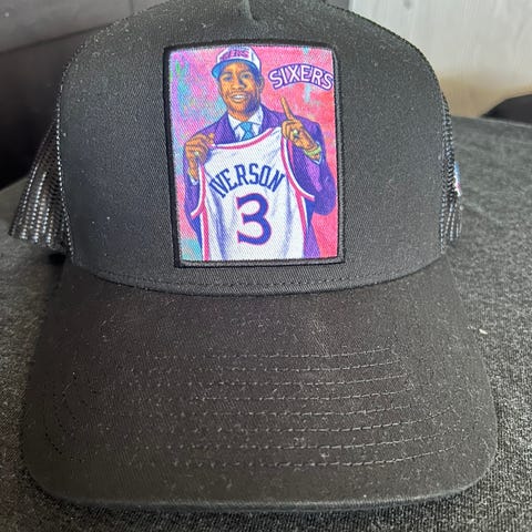 Mørk blå caps med custom hvit KUNST tekst