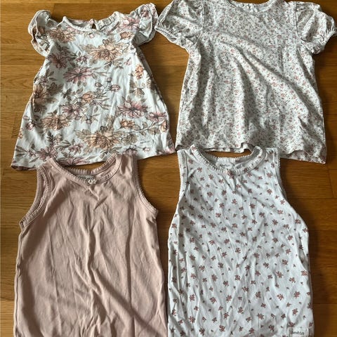 Selger 2 stk newbie topper/t-skjorter str 98/104. Begge har vært vasket, men tror de er ubrukt. Ingen synlig bruk. Kan være den hvite har vært brukt en gang. Super fine, men selges grunnet for liten størrelse.