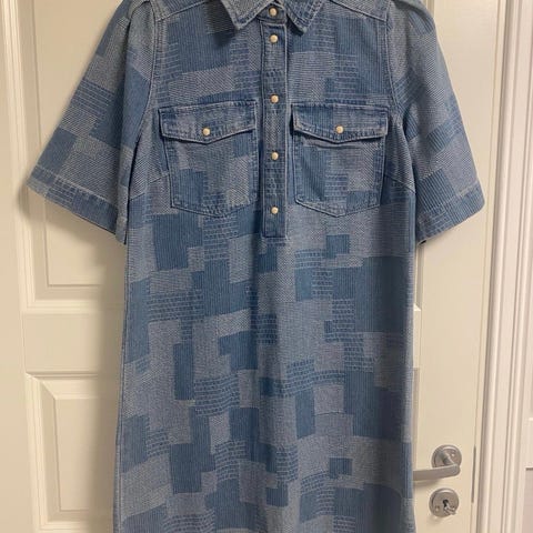Sort denimkjole fra Object med knepping og belte i livet. Passer også størrelse S da den er noe elastisk. Kun brukt et par ganger så er som ny.