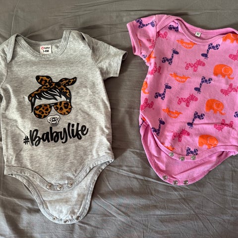 7 kortermede body str 62-68 (står 68 I Men vil heller si det er mer 62 evt liten 68). Kjøpt på primark. Ingen flekker. Røyke og dyrefritt hjem.