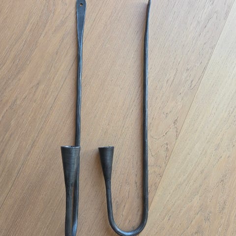 2 stykk vegglysestaker i kobber og treverk.