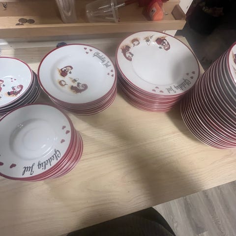 Nesten ubrukt God Jul servise fra Nille. Kun kjøpt over noen år, men blitt stående i skapet. Dermed veldig pent enda, med ingen skår / lite riper.
