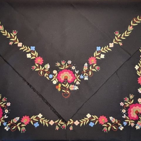 Ferdig brodert Øst-Telemarksbunad selges. Veldig pent brodert. Det inneholder stakkebånd, forkle, liv og veske. Den kan monteres til nesten alle størrelser. Stakkestoff og rødt stoff til kanting følges med.
