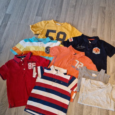 En ubrukt t shirt fra Timberland. Ellers er de fra Mexx, The New, H&M og en hjemmesydd.