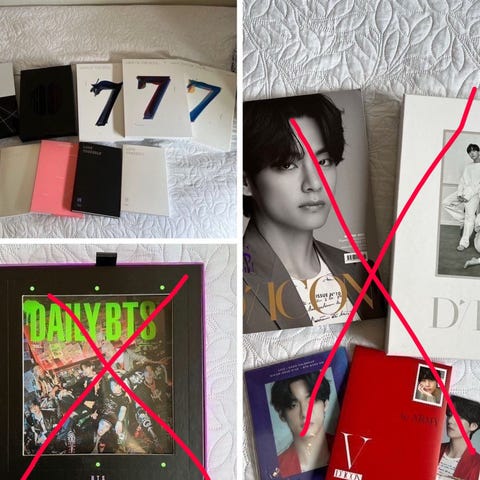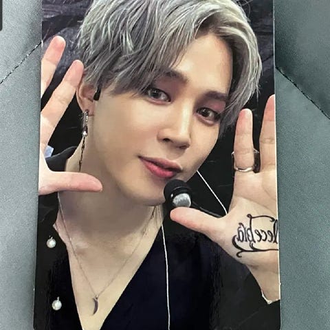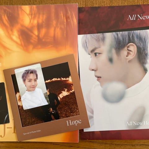 BTS Map Of The Soul On:e concept photobook special set selges med alt det kom med, se screenshots. 3 photocards, alle er Suga, så det er hele settet hans. Boksen har kun ligget lagret i et skap, og bøkene har kun blitt bladd gjennom en gang.