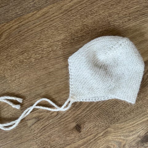 Selger hjemmestrikket nyfødtlue.