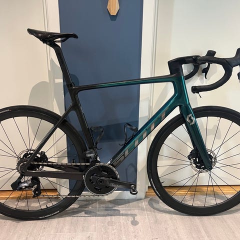 Selges med Shimano Ultegra pedaler, Supacaz Carbon flaskeholdere, helt nye og aldri brukt Continental gp5000 dekk og K-edge frontmount for Garmin