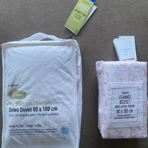 2 nye sengesett kjøpt i starten av 2025. Flere sengesett av eldre dato. I tillegg til pute og dyne, samt sval dundyne og fiberpute.