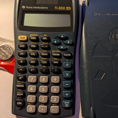 Casio fx-82ES kalkulator med etui på bildet.
