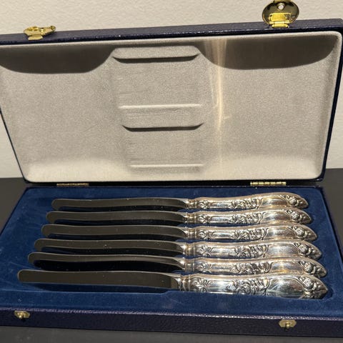 Sett med 6 gafflar (18cm). Fint brukt.