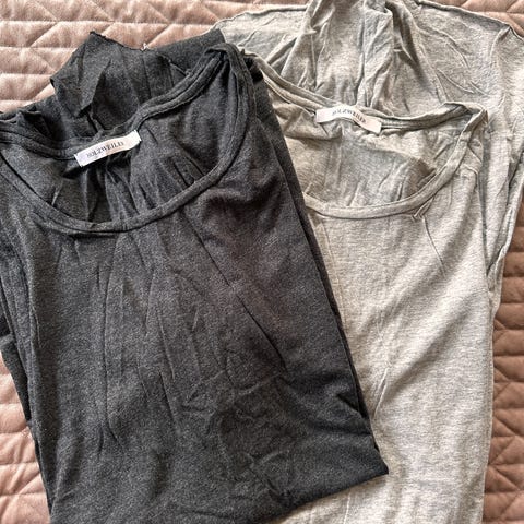 2 t-skjorter, en grå og en blågrønn
