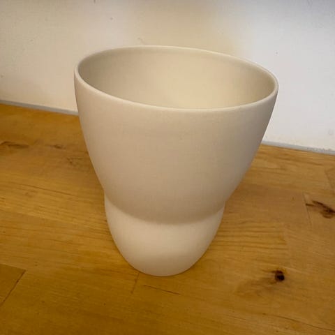 En stilig knivblokk / redskapsholder fra danske Normann Copenhagen selges pga overgang til annen modell. Den er brukt og har bruksspor, men mest innvendig oppi der redskapene har stått. Antiskli under. Kan roteres.