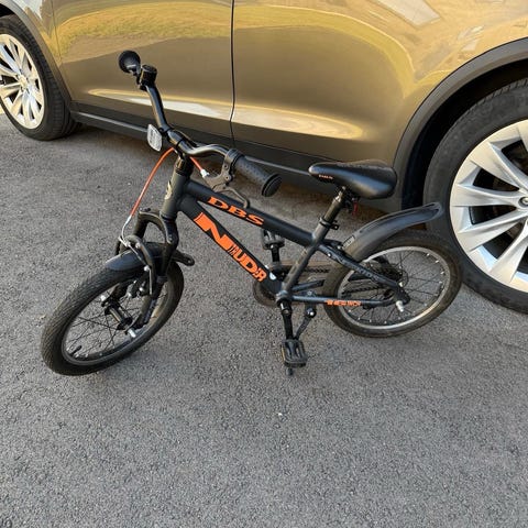 Pent brukt barnesykkel. Støtte og skjermer følger med.