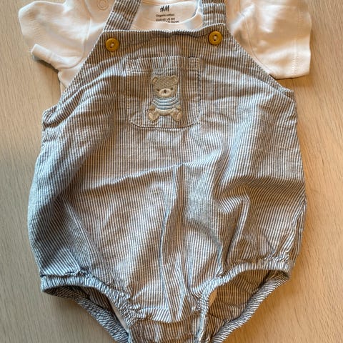 Stripete romper fra H&M med bamsebroderi – str. 62. Perfekt til sommeren! Fra røyk- og dyrefritt hjem. Se mine andre annonser mht om jeg skal sende flere plagg samtidig.