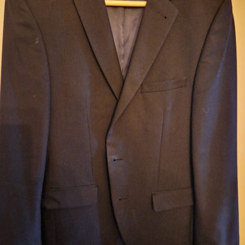 Duffel & Rums dressjakke i størrelse 48. Jakken er grå og laget av en blanding av 54% polyester og 44 % ull, noe som gir en komfortabel og holdbar kvalitet. Fôret består av 55% polyester og 45% viskose, som sikrer en behagelig passform. Perfekt for formelle anledninger. Kan følge med Mario Conti bukse str 31/32 til kr 200. Evt bud