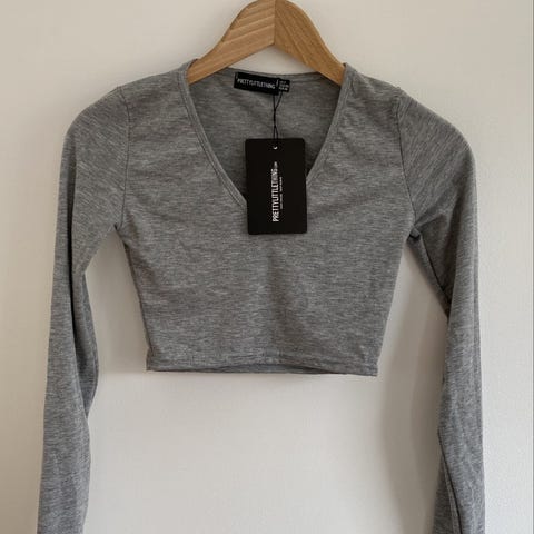 Nydelig langermet topp i sort fra Pretty Little Thing, med trekantformet utringning samt utringning på ryggen. Cropped og tettsittende passform, med tilhørende bånd for å knyte og fremheve midjen 🖤