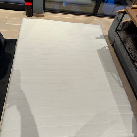 Ei brukt IKEA dobbeltseng. Madrassar og overmardass frå Jysk følgjer med. Små bruksmerker.