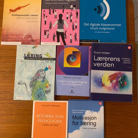 Pensumbøker til PPU-Y studie, alle bøkene er kjøpt nye høsten 2023 og høsten 2024.