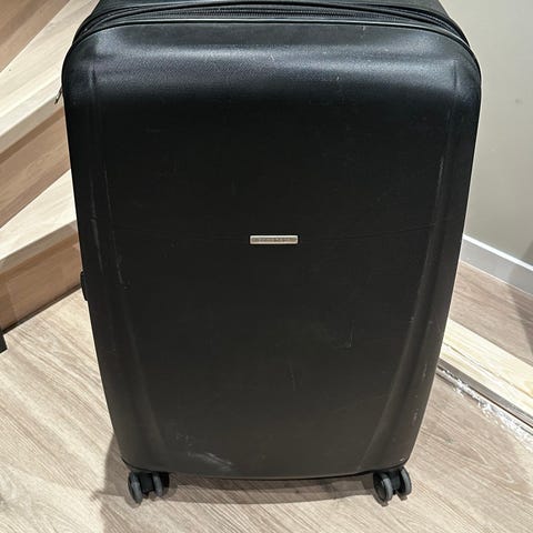 Praktisk og stor sort koffert selges. Den er i god stand og har flere smarte lommer,