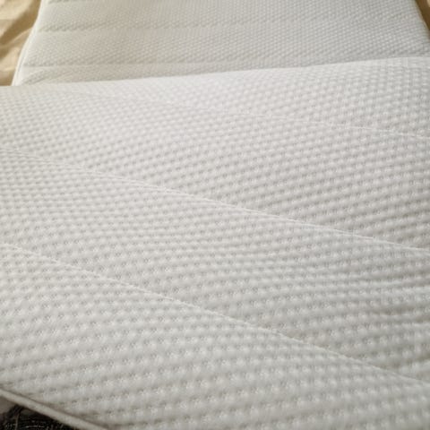 Overmadrass 75×90 cm. Brukt 2 ganger på ekstraseng, gjesterom på hytta.