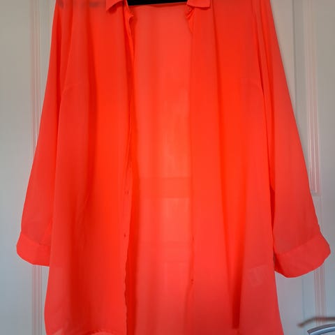 Korall / oransje silkebluse fra Custommade, str 34.